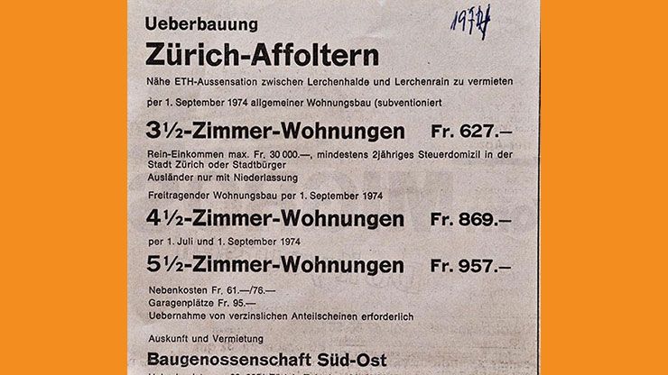 - 1971: Erste Wohnungen an der Holzerhurd 46 (Zürich-Affoltern) bezugsbereit